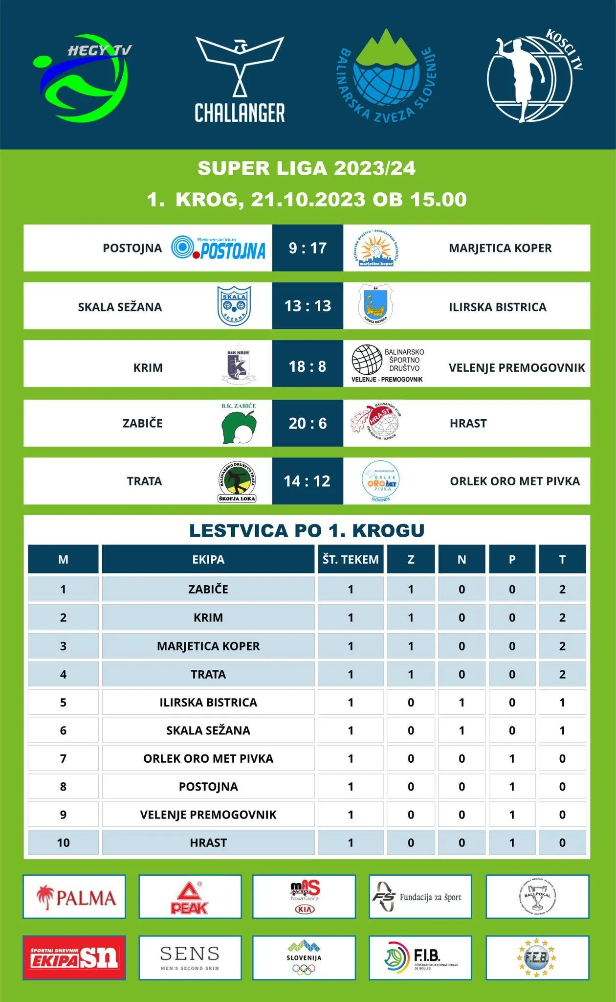 Rezultate lahko spremljate že med potekom tekme preko naše strani Tekmovanja, kjer vas v podrobnostih čaka povezava do zapisnikov.