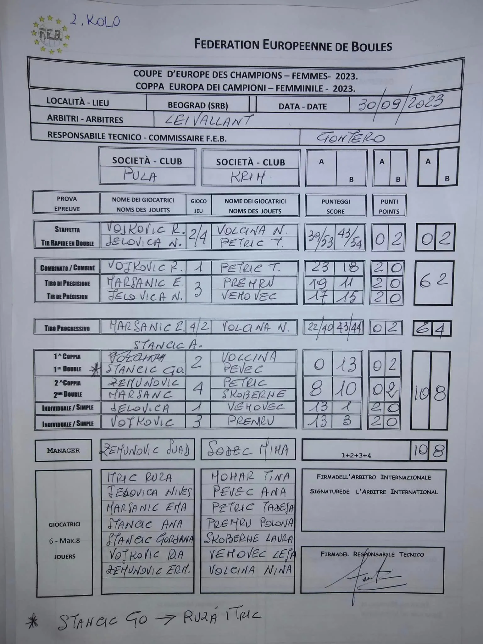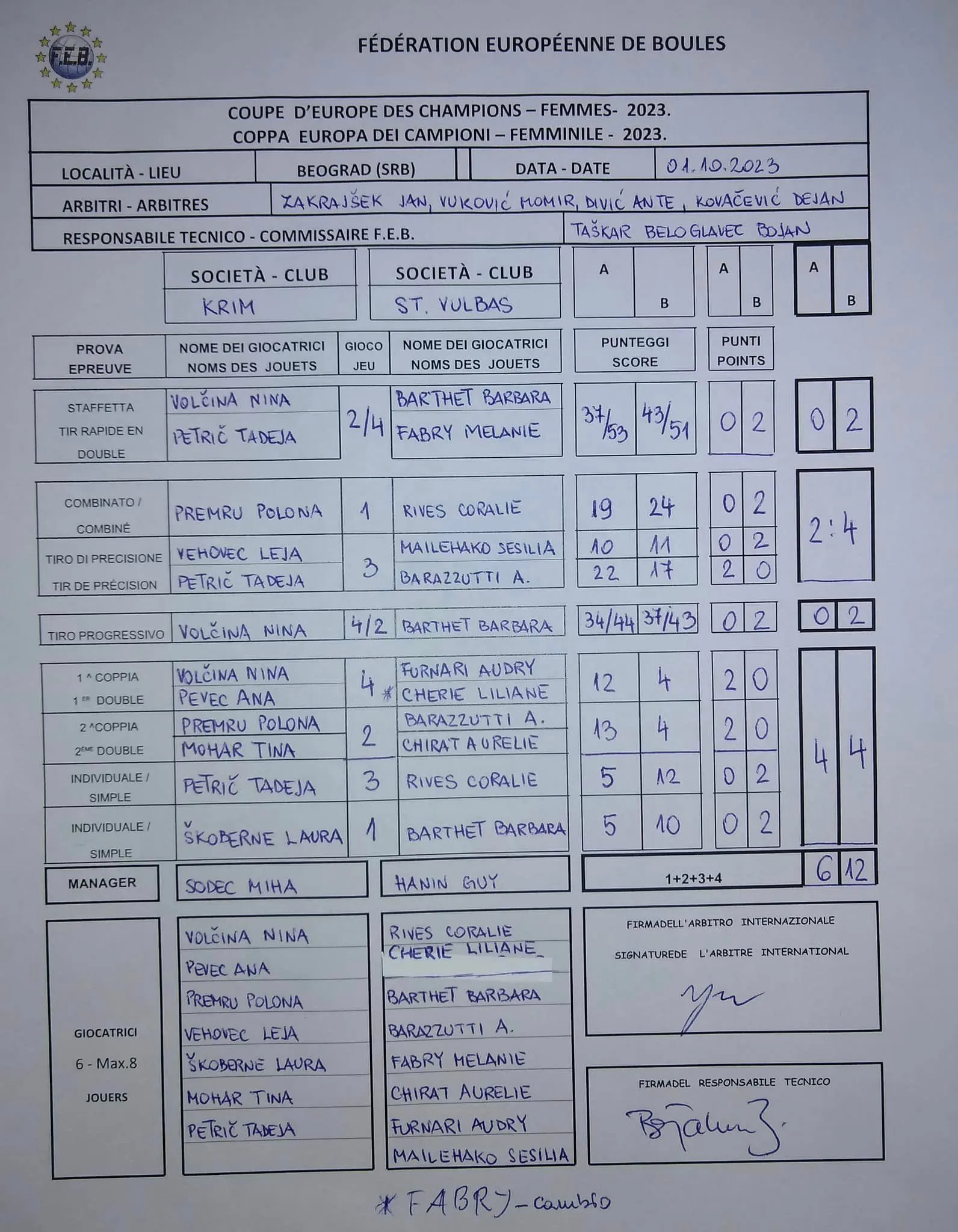 V Beogradu se je konec tedna za naslov evropskih klubskih prvakinj borilo pet najboljših ženskih klubov. Krimovke so se za naslov evropskih klubskih prvakinj borile proti ekipi italijanskega Buttria, francoskega Saint Vulbasa, hrvaške Pule, domačega Novega Beograda. Po zaključku napornega tekmovanja so Krimovke osvojile končno peto mesto, za kaj več pa bi potrebovale kanček športne sreče. Naslov evropskih klubskih prvakinj  je osvojila Hrvaška.