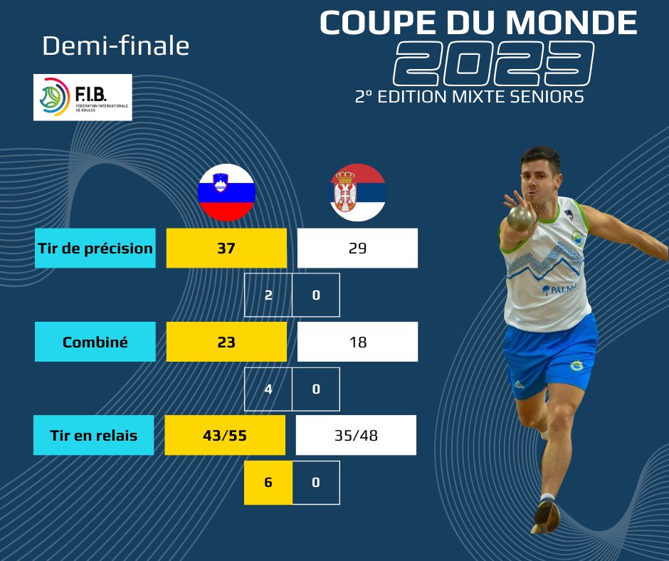Tekmovanje se je v soboto pričelo s skupinskim delom, kjer je Slovenija najprej slavila s 6:0 proti Slovaški, nato pa še proti Japonski. Po dvojni zmagi je sledil nastop v nedeljskem polfinalu, kjer se je Slovenija za uvrstitev v finale borila proti Srbiji. S suverenima zmagama Žana in Leje v natančnem zbijanju in igri v krog je Slovenija slavila uvrstitev v finale in s končnim 6:0 ugnala tudi Srbijo.