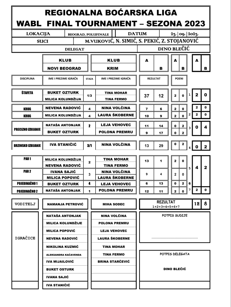 Krimovke so tako osvojile končno 3. mesto, ki si ga delijo skupaj z ekipo BK Postojna, ki je v polfinalu izbubila z 8:12 proti ekipi ŽBK Pula. V finalnem boju pa je z 16:4 slavil hrvaški državni prvak ŽBK Pula.